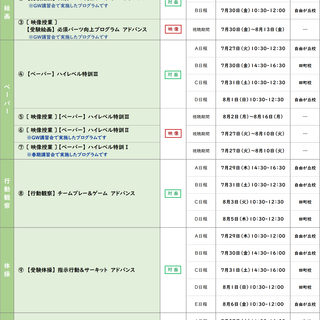 ・複数日程あるプログラムは、同じ内容です。ご都合に合わせてお選びください。