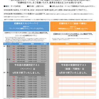 2020年度 年長レギュラークラス 受講判定テストのご案内