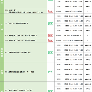 ・複数日程あるプログラムは、同じ内容です。ご都合に合わせてお選びください。