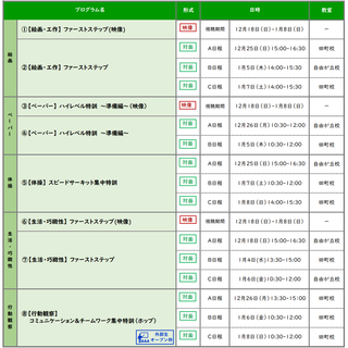 ・複数日程あるプログラムは、同じ内容です。ご都合に合わせてお選びください。